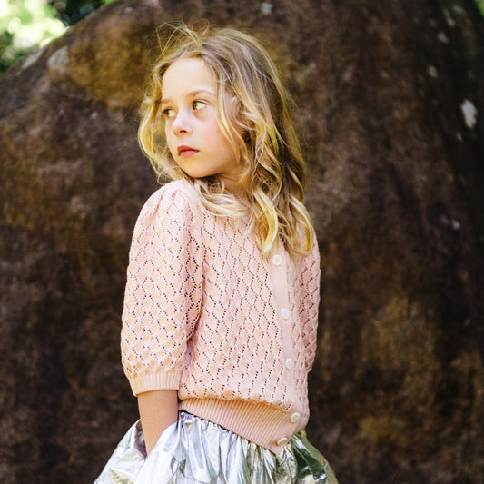 from 5 reviewsI couldn’t be happier with this gorgeous knitted top I got for my daughter! The pale pink color is absolutely beautiful, and it looks so pretty on her. The fabric is incredibly soft, which makes it super comfortable for her to wear all day. The flutter sleeves add such a cute and playful touch, making it a perfect mix of stylish and sweet.