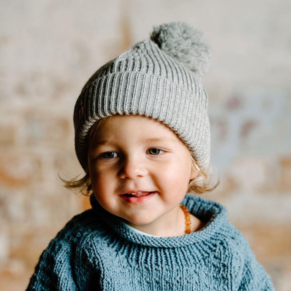 Moss Le Petit Alpaca Beanie in Grey Mist.