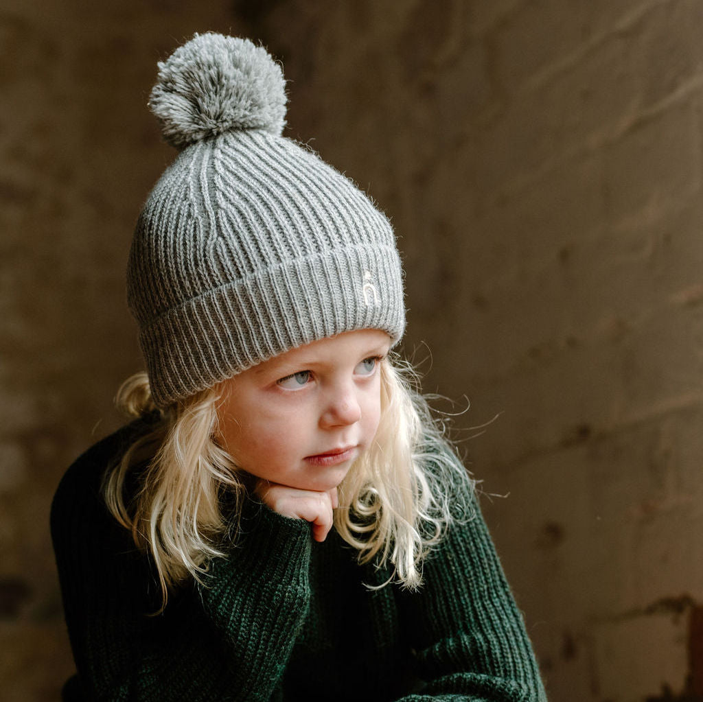 Hand crafted in a classic fisherman's rib stitch, topped with a pom-pom and finished with a small embroidery logo at the front.