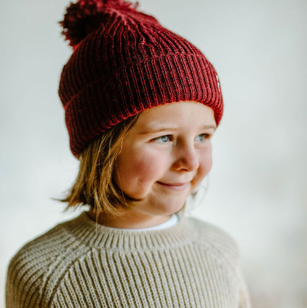 Moss Le Petit Alpaca Beanie in Rhubarb.