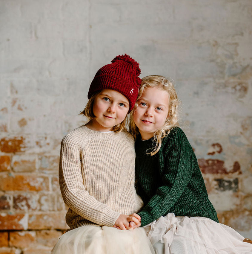 Hand crafted in a classic fisherman's rib stitch, topped with a pom-pom and finished with a small embroidery logo at the front.
